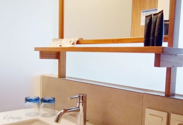 Kecuali kepepet, baru saya memakai peralatan mandi dari hotel. Itu pun tidak semua. Paling-paling sabun mandi atau handuk saja. Sikat gigi selalu bawa sendiri, bukan memakai sikat gigi dari hotel. Entah kenapa saya kurang sreg memakai sikat gigi dari hotel, bulu sikatnya kurang lembut menurut saya.